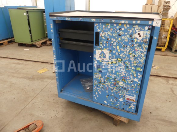 Werkplaatskast met 2 schuifdeuren Merk: Lista Lengte: 58 cm Breedte: 100 cm Hoogte: 102 cm 2 lades aan de binnenkant