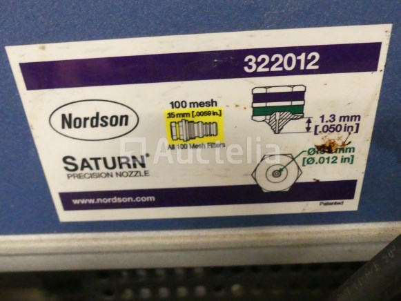 Lijmpistool met tafel Merk: Nordson Model: Durablue 4 Lengte: 100 cm Breedte: 60 cm Hoogte: 140 cm Staat: Niet getest Geleverd met diverse onderdelen