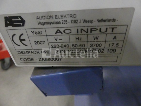 Semi-automatische kamerwikkelmachine Merk: DEM Model: Dempack H22 Jaar: 2007 Spanning: 400V driefasig Lengte: 145 cm Breedte: 80 cm Hoogte: 115 cm Vermogen: 3700 watt Staat: Niet getest
