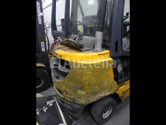 Gas vorkheftruck Merk: Jungheinrich Model: TFG20A Lengte: 360 cm Breedte: 120 cm Hoogte: 220 cm Gewicht: 3350 kg Voortstuwing: Gas Hefvermogen: 2000 kg Vermogen: 26 kW Lengte vork: 120 cm Type mast: Triplex Hefhoogte: 500 cm Aantal wielen: 4 Aantal: 2 Staat: op te knappen