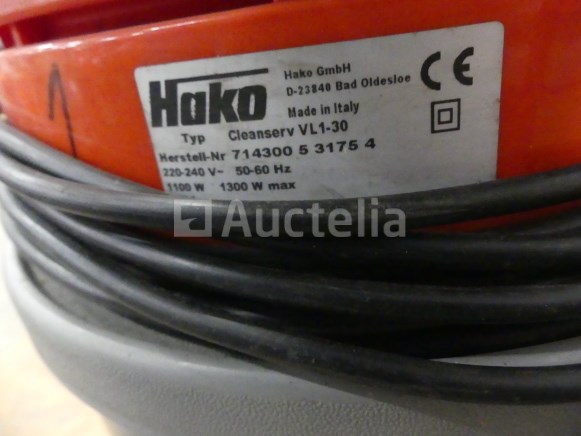 Stofzuiger Merk: Hako Model: VL 1-30 Spanning: 230V Mono Hoeveelheid: +/-4 Staat: Niet getest Opmerkingen: Geleverd zonder slangen en borstel