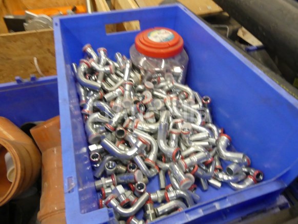 Compositie: Bevestiging voor diverse buizen en pijpen Diverse verwarmingsfittingen en ellebogen Diverse waterfittingen en ellebogen Diverse PVC fittingen en ellebogen Set verdeeld over 5 pallets Aanbevolen bezoek