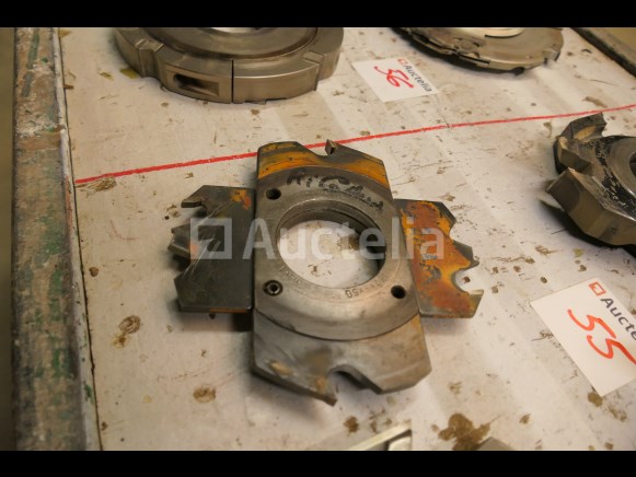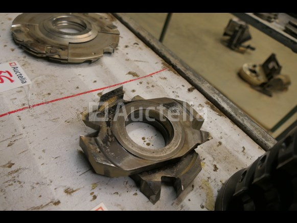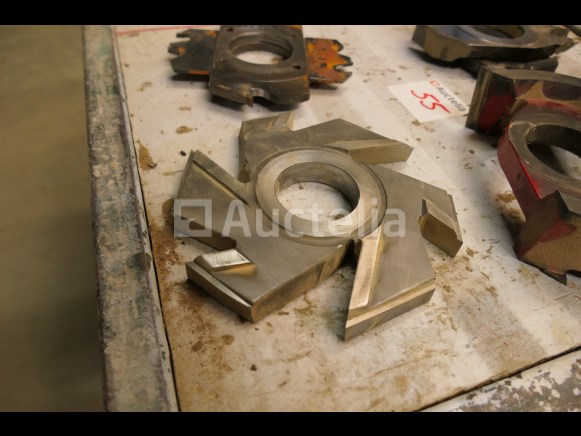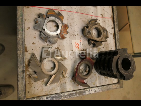 Wiens; 1 x kalibrerende frees: hoogte 107 mm x diameter 12,5 cm en 5 cm boring (met lager. frezen met een boring van 5 cm; 2 x Groef Frezen 1 x flatbed snijder 1 x Overlappende snijder