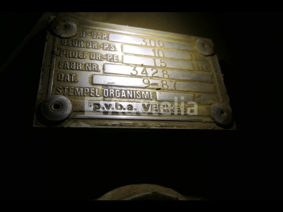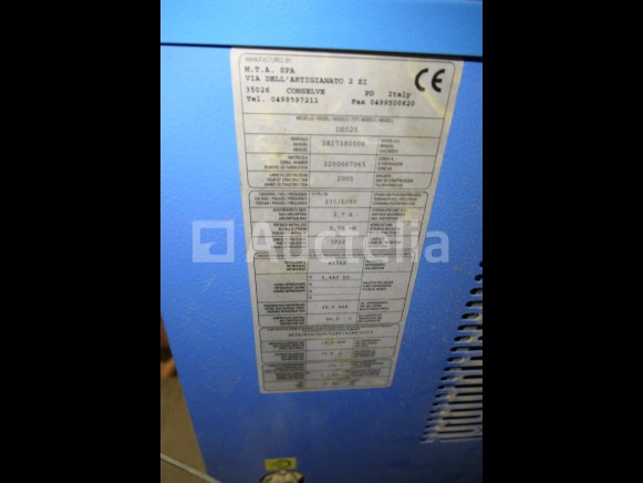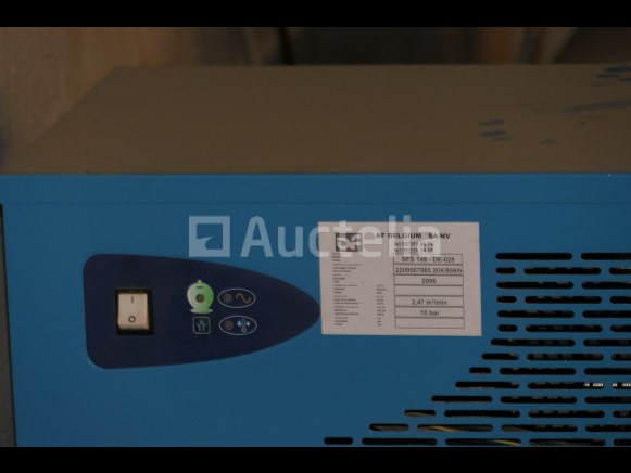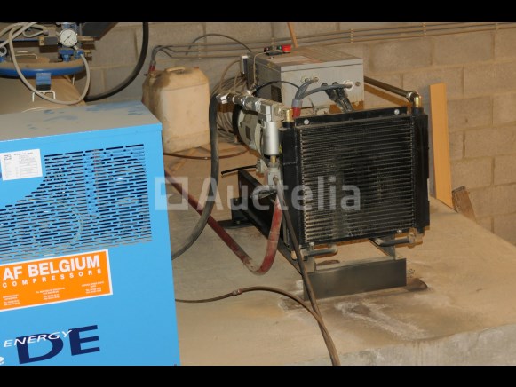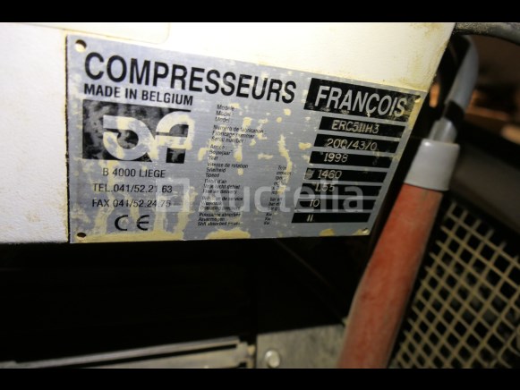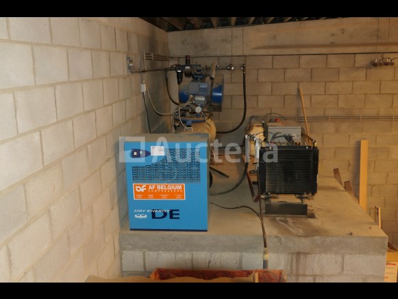 Getest: Nee 1 x Compressor: 190 cm x 60 cm x 135 cm Merk: Verkest Model: Witte tank en blauwe groep Jaar: 1987 Tankinhoud: 300 liter 380 Volt draaistroommotor Vermogen: 5,5 kw 1 x Compressor: 125 cm x 60 cm x 83 cm Merk: Mattei Model: ERC 511H Jaar: 1998 Uur meter: 45906 h Spanning: 380 volt driefasig Vermogen: 11 Kw 1 x Luchtdroger: 65 cm x 40 cm x 75 cm Merk: MTA Artikelnummer: DE025 Jaar: 2005 Spanning: 230 Volt mono Vermogen: 0,7 Kw Opmerkingen: Bezoek aanbevolen, de apparatuur staat op een plaat van 255 cm hoog, mogelijke toegang met een vorkheftruck tot aan de voet van de muur via een deur van 170 cm breed en 285 cm hoog