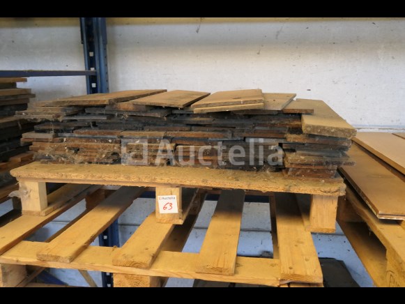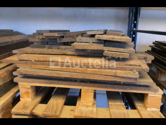 Kavel verdeeld over 6 pallets inclusief; 3 houten pallets met een rand van 10 mm dik in kwarten voor meubelpanelen 1 houten pallet 8/4 in +/- 75 cm lang 1 pallet gevierendeeld hout in 20 mm dik en +/- 60 cm lang 1 vierkant en +/- 56 stuks van 80 cm x 11 cm x 6,5 cm Opmerkingen: Aanbevolen bezoek