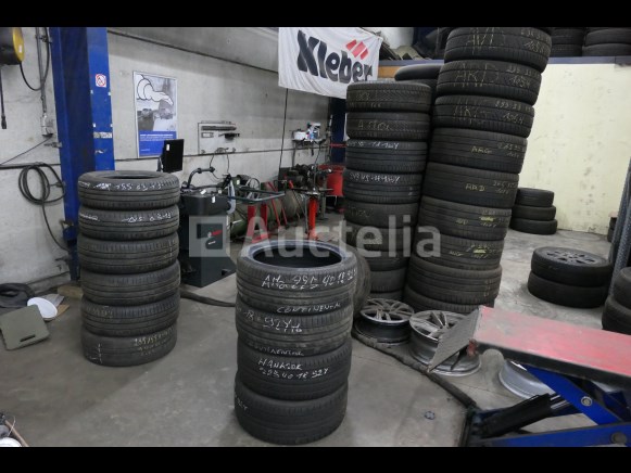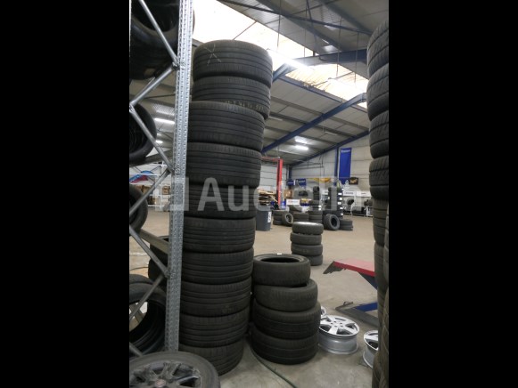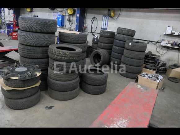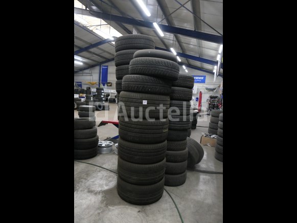 Grote partij diverse banden van diverse merken en condities Sommige op velgen Geschatte hoeveelheid: +/- 90 Opmerkingen: Kavel opgeslagen op de grond aan weerszijden van kavelnummer 4