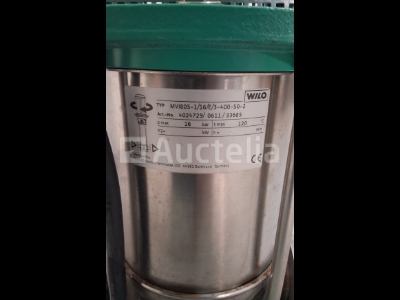 Frequentie gestuurde pomp mvi 805-1/16/E/3-400-50-2 QS FC 90S2A-42 centrifugal pump, inline pump, vertical high pressure centrifugal pump WILO Multivert MVI805-1 /16 /E /3-400-50-2 /EC 4024730/0403/02117 p: max. 16 bar t: max. 120 ° C Installation length: 200 mm Connections: Ø 48 mm Motor: QS FC 90S2A-42 H 1.85 kW 2810 rpm 230/400 V 3AC 50 Hz used, overhauled! Dimensions: 255 x 250 x 705 mm