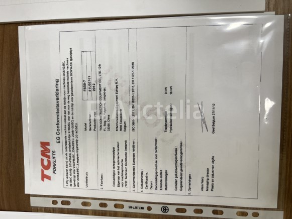 Merk: TCM Model: FB30-7 Jaar: 2012 uren: 400 uur Voorwaarde: Afhankelijk van verkoper Aanbevolen bezoek Batterijen zijn ongeveer een jaar geleden vervangen