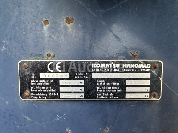 Merk: KOMATSU-HANOMAG Model: D600DS Jaar: 1996 Uren: 600h Voorwaarde: Afhankelijk van verkoper Aanbevolen bezoek Laden op kosten van de klant Locatie: Izel
