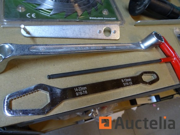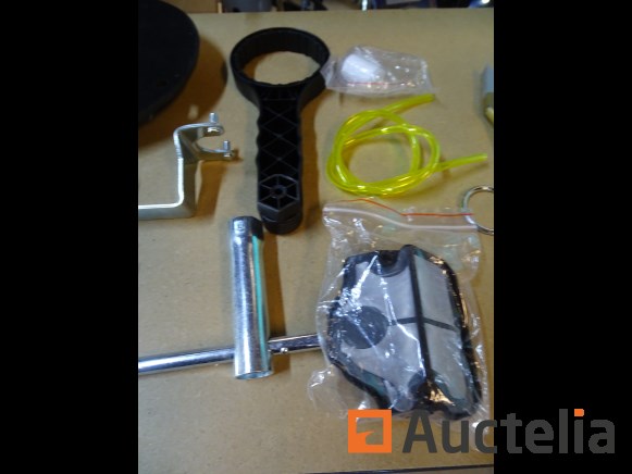 Diverse hulpmiddelen Detail: . 1 BGS ijzeren borstel diameter 115 mm . 1 steeksleutel met meerdere vergrendelingen (8 tot 13 mm, 14 tot 22 mm) . 1 x INBUSSLEUTEL diameter 5 mm . 1 stiftsleutel 18/19 . 1 Blad met een diameter van 200 mm . 1 Bougiesleutel . Divers Conditie: Nieuw Verzending: Tarief A