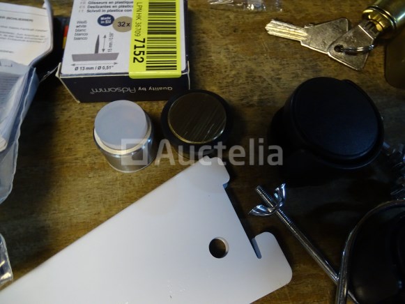 Uitrusting Hoeveelheid: 20 sets Detail: . Flap haspel + riem . Deurklinken . Deur Houder Slot . Rekken Consoles . Paar ladegeleiders . Deurklink voor meubels . Speelgoed wiel . Stoel glijders . Kast scharnieren . Flap slinger . Deur sloten . Deur stopt . Kapstok haak . Divers Staat van het perceel: Nieuw Verzending: Tarief B