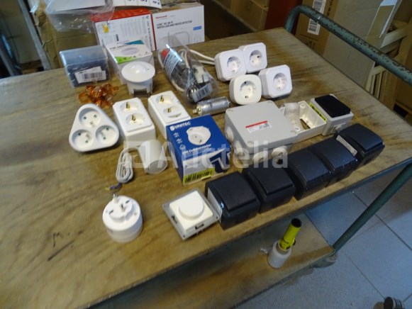 Elektriciteit Hoeveelheid: 24 sets Detail: . Kabelbinders . Lamp detectoren . Verwarmingselement . Aansluitdoos . Switches . Genomen . Divers Staat van het perceel: Nieuw Verzending: Tarief B
