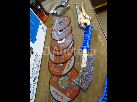 Lasapparatuur Detail: . Lasapparaat . Zelfverduisterende lashelm . 7 WURTH Schijven - diameter 125 mm . Klem . C-lassen klem . 2 Staalborstels Staat van het perceel: Nieuw Verzending: Tarief D
