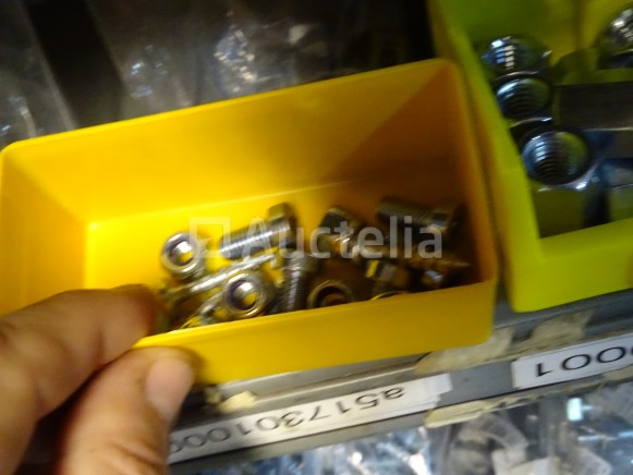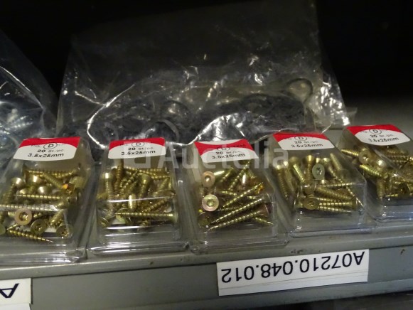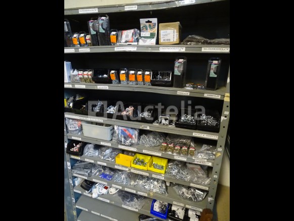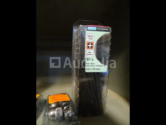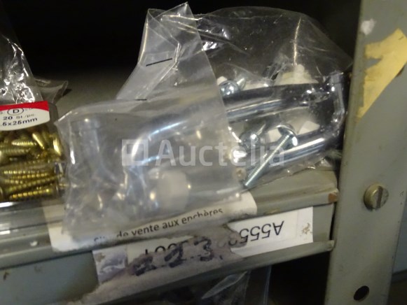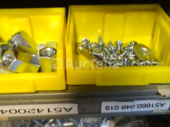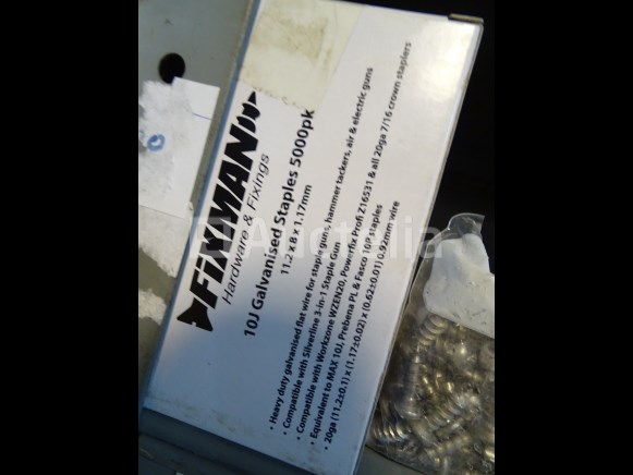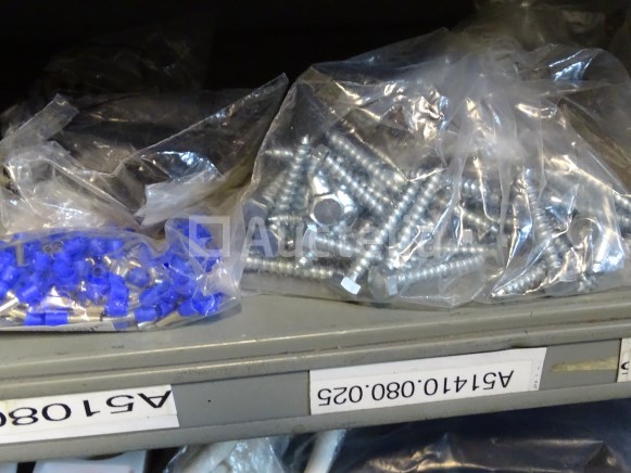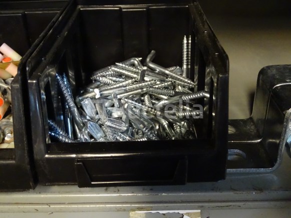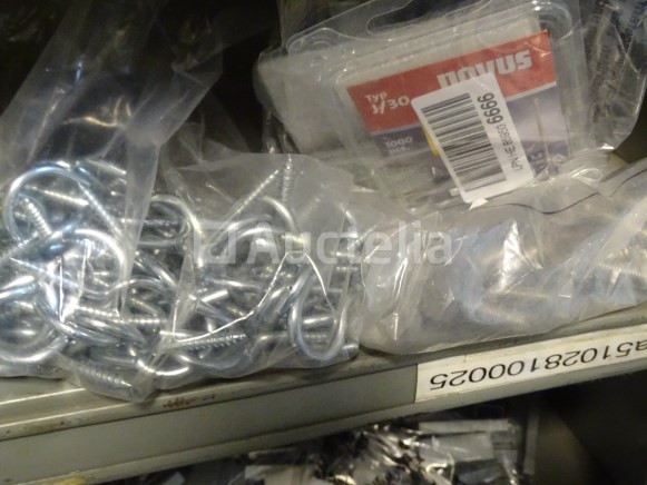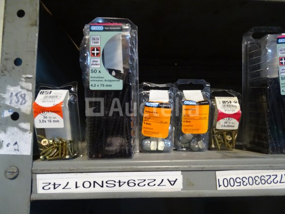 Diverse bevestigingsmiddelen Hoeveelheid: (+/-) 20.000 stuks Detail (zie foto's): . Schroef . Nagels . Vastgeschroefde bouten . Gyplaw schroeven . Magneten . Vierkante haken . Talrijke brievenbussloten . Houtdraadschroeven met strakke ringen . Nietjes Staat van het perceel: Nieuw Opmerkingen: . 14 plastic bakken inbegrepen . Planken niet inbegrepen Verzending: Tarief D