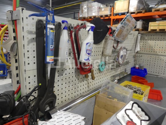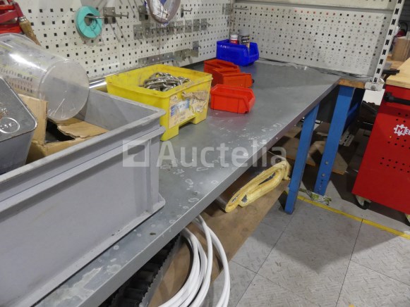 Werkplaats werkbank Lengte: 200 cm Breedte: 80 cm Hoogte: 92 cm Aantal: +- 2 Inbegrepen: Credenza voor het ophangen van gereedschap en bankschroef Niet inbegrepen: Inhoud en elektrisch paneel In hoogte verstelbaar