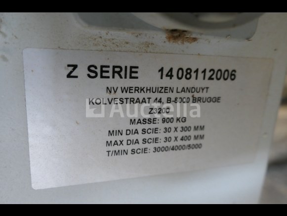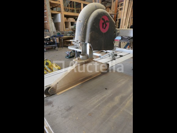 Paneelzaag Merk: Robland Model: Z320 Spanning: 230V driefasig Lengte: 350 cm Breedte: 220 cm Hoogte: 160 cm Gewicht: 900 kg Vermogen: 7,5 PK Status: Functioneel op Inventarisatiedag Inbegrepen: 1 stofzuiger 1 zak Met kantelbaar blad en insnijding