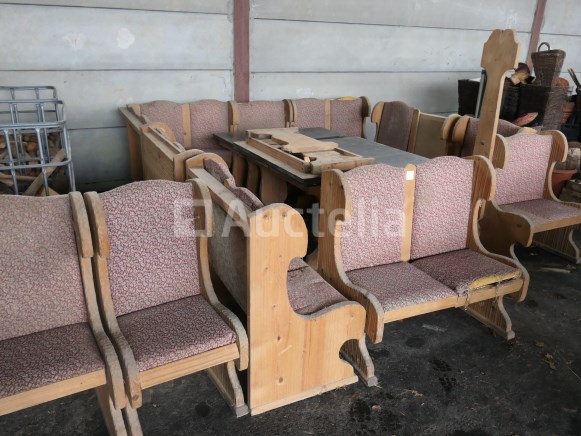 Rustieke banken en tafels die moeten worden gerestaureerd