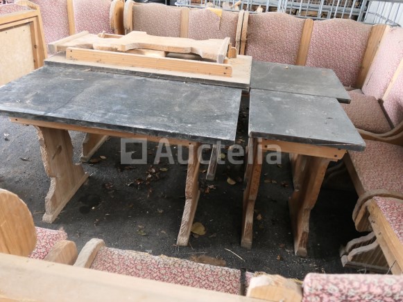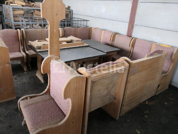 Hoeveelheid +/- 11,2 strekkende meter zitbank Diepte: +/- 60 cm Hoogte: +/- 105 cm Tabellen 3 x +/- 130 cm x +/- 654 cm x +/- 75 cm 1 x +/- 60 cm x +/- 60 cm x +/- 75 cm 1 x +/- 60 cm x +/- 50 cm x +/- 75 cm Opmerkingen: Aanbevolen bezoek