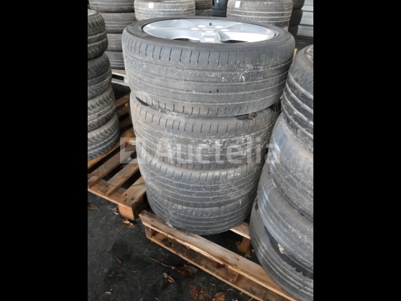 Diverse banden gemonteerd op aluminium velgen Hoeveelheid: +/- 17 Ingesteld op 2 pallets Opmerkingen: Aanbevolen bezoek