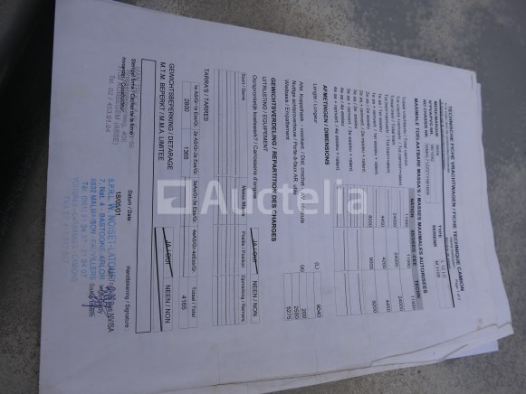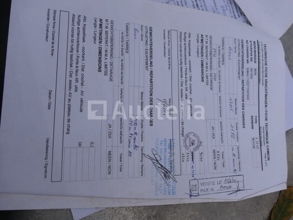 Berging vrachtwagen Merk: MAN Model: L12LC Jaar: 2001 Kilometerstand: 516464 Datum 1e inschrijving: 26-03-01 Brandstof: Diesel Versnellingsbak: Handgeschakeld MMA: 11990 kg Ledig gewicht: 8000 kg Wielbasis: 527 cm Airconditioning: Nee Radio: Ja Achteruitrijradar: Nee Achteruitrijcamera: Nee Aantal toetsen: 1 Aantal zitplaatsen: 4 Certificaat van overeenstemming: Ja Certificaat technische keuring: Ja Technisch keuringscertificaat geldig tot: : 06-08-23 Bewijs van inschrijving deel 1: Ja Gegevensblad vrachtwagen : Ja Identificatierapport: Ja Voertuig nog in dienst (kilometerstand evolueert): Nee Chassisnummer: WMAL71ZZZ1Y081609 Euronorm: 2 Getest: Nee Staat: op te knappen Inbegrepen: Autogru 8-serie telescopische kraan Batterij fout Opmerkingen: Niet-lopend bij verwijdering Aanbevolen bezoek