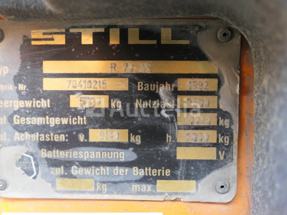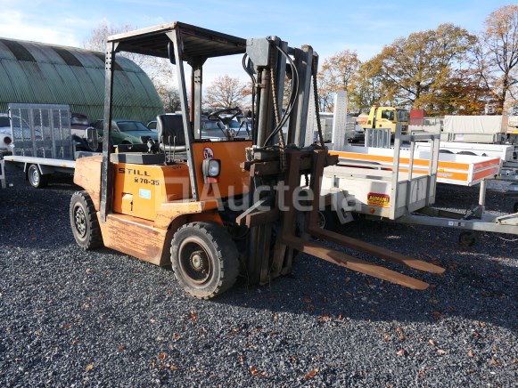 Vorkheftruck Merk: Still Model: R70-35 Jaar: 1992 Uren: 6653 Gewicht: 5737 kg Voortstuwing: Thermisch Hefvermogen: 3500 kg Lengte vork: 115 cm Type mast: Duplex Aantal: 1 Getest: Nee Staat: op te knappen Opmerkingen: Aanbevolen bezoek