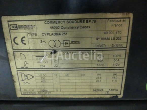 Plasma snijmachine Merk: Lassen handel Model: Cyplasma 251 Spanning: 400V driefasig Lengte: 65 cm Breedte: 50 cm Hoogte: 90 cm Staat: Niet getest