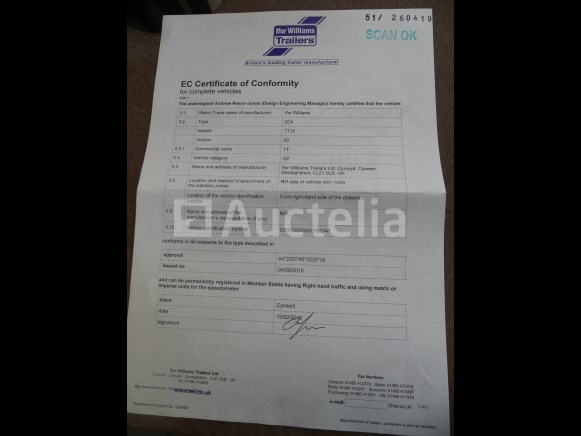 Kipper aan de zijkant Merk: Ifor Williams Model: 2CB Jaar: 2019 Lengte: 495 cm Breedte: 210 cm Hoogte: 120 cm Datum van 1ste inschrijving : 25-04-19 MMA: 3500 kg Tarra: 1010 kg Ophanging: Mechanisch Certificaat van overeenstemming: Ja Certificaat technische keuring: Ja Technisch keuringscertificaat geldig tot: : 14-03-23 Bewijs van inschrijving deel 1: Ja Bewijs van inschrijving deel 2: Ja Chassisnummer: SCKD00000K0761241 Staat: Niet getest Binnenafmetingen van de carrosserie: 360x200x42 cm Lengte dissel: 120 cm Opmerkingen: Aanbevolen bezoek