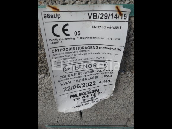 Massieve sintelblokken Lengte: 29 cm Breedte: 19 cm Hoogte: 14 cm Aantal :+/- 860 Set verdeeld over 9 pallets