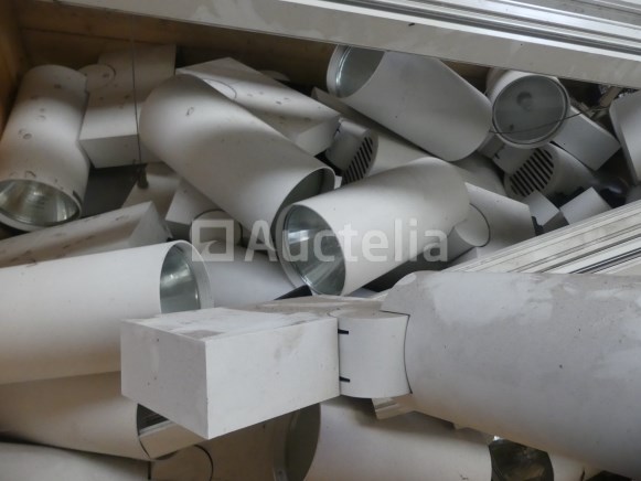 Halogeen schijnwerperlamp op verstelbare rails Aantal :+/- 36 Staat: Niet getest Set verdeeld over een palletbox Opmerkingen: Aanbevolen bezoek