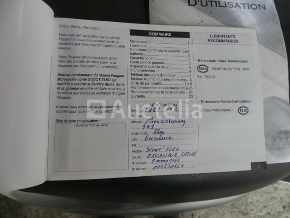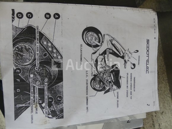 Elektrische scooter Merk : Peugeot Model: Scoot'elec Kilometerstand : 1965 Gewicht: 115 kg Staat: Niet getest Met geïntegreerde oplader Geen boorddocumenten meegeleverd Opmerkingen: Aanbevolen bezoek