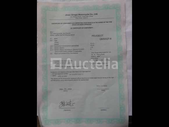 50cc scooter Merk : Peugeot Model: V-klik Kilometerstand : 16000 Gewicht: 85 kg Verplaatsing (cm³) : 49 Aantal toetsen: 1 Certificaat van overeenstemming: Ja Bewijs van inschrijving deel 1: Ja Bewijs van inschrijving deel 2: Ja Chassisnummer: LAEAGZ4808B28876 Staat: Niet getest Opmerkingen: Aanbevolen bezoek
