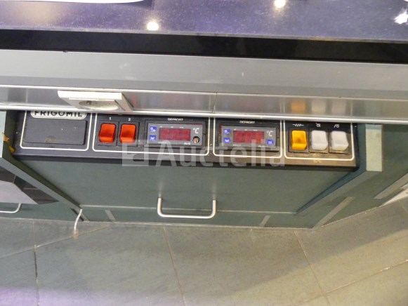 Gekoelde toonbank Merk: Frigomill Lengte: 830 cm Breedte: 210 cm Hoogte: 112 cm Status: Functioneel op Inventarisatiedag Niet inbegrepen: Kassa + betaalterminal