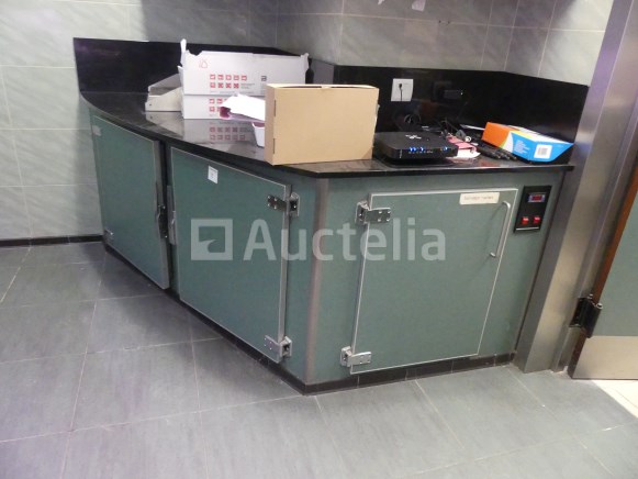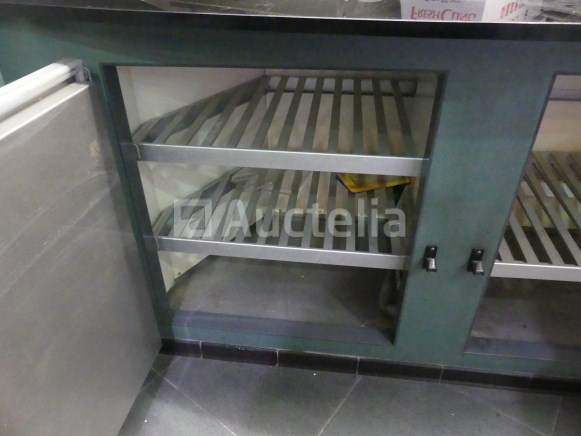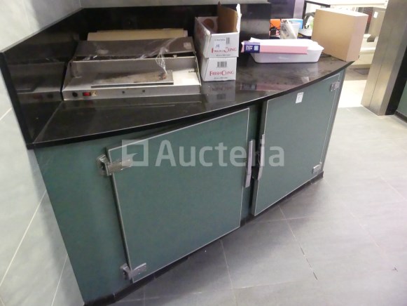 Spanning: 230V Mono Lengte: 180 cm Breedte: 147 cm Hoogte: 83 cm Marmeren plank Koelkast in positief Opmerkingen: te ontmantelen Aanbevolen bezoek