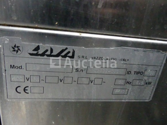 Vaatwasmachine Merk: Lasa Model: LS4 Spanning: 400V driefasig Lengte: 60 cm Breedte: 60 cm Hoogte: 147 cm Vermogen: 6,5 kW Status: Functioneel op Inventarisatiedag