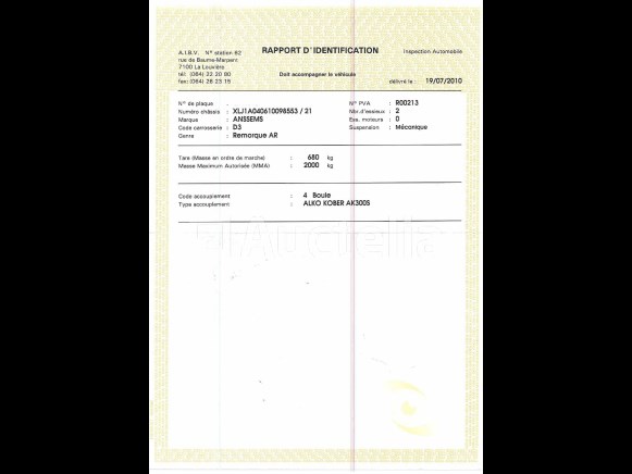 Dubbelassige aanhangwagen Merk: Anssems Jaar: 2010 MMA: 222 kg Bewijs van inschrijving deel 1: Ja Bewijs van inschrijving deel 2: Ja Identificatierapport: Ja Chassisnummer: XLJ1A040610098553