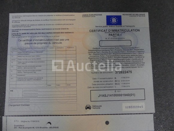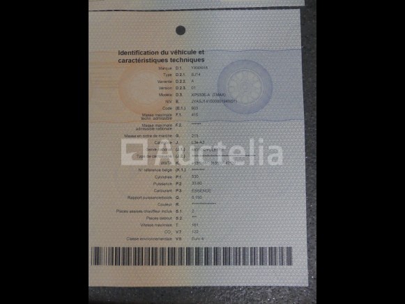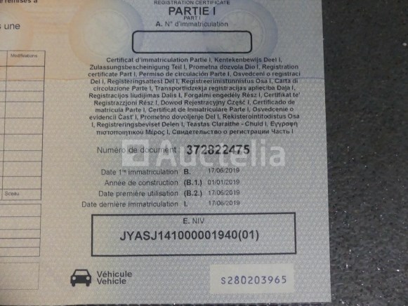 500cc scooter Merk: Yamaha Model: TMAX Jaar: 2019 Kilometerstand : 47493 Vermogen: 33,8 kW Datum van 1e inschrijving: 17-06-19 Brandstof: Benzine Verplaatsing (cc³) : 530 Aantal toetsen: 2 Aantal zitplaatsen: 2 Certificaat van overeenstemming: Ja Certificaat van keuring bij de technische keuring: geen Bewijs van inschrijving deel 1: Ja Bewijs van inschrijving deel 2: Ja Voertuig nog in dienst (kilometerstand evolueert): Nee Chassisnummer: JYASJ141000001940 Euronorm: 4 Staat: Niet getest Het voertuig startte tijdens de inventarisatie Voertuig rijden op het moment van ophalen Voertuig verkocht zonder kenteken Opmerkingen: Het voertuig heeft tijdens de inventarisatie geen grondige inspectie ondergaan en kan niet-zichtbare gebreken vertonen De koper wordt verondersteld het kavel vóór zijn veiling te hebben bezocht om eventuele ontkoppeling, demontage of logistiek te plannen die nodig is voor het ophalen van zijn aankoop