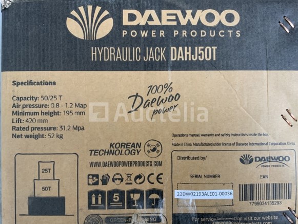Capacity 50/25T; max hoogte 420mm; min hoogte 195mm; eigengewicht 52KG;