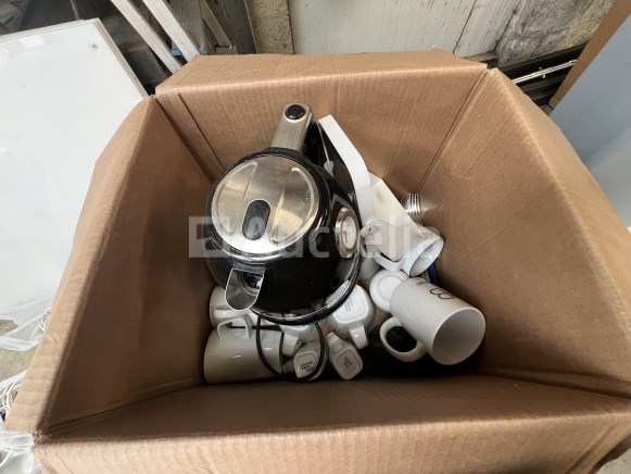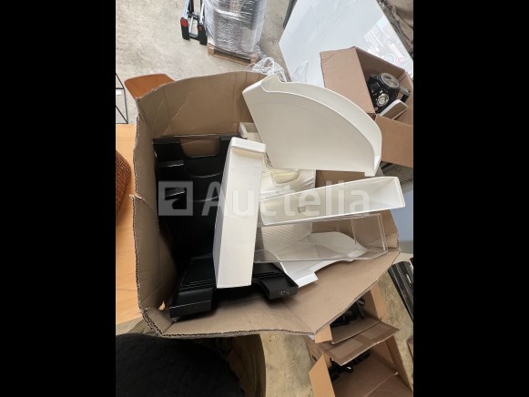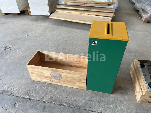 Set van twee kerstbomen + twee magnetische bomen Groene spar n°1 : 1m50 Groene spar n°2 : 1m70 2 magnetische bomen met elk 3 magneten 14 verzamelhaspels met snijinrichting één haspel = 70 cm breed x 250 m lang Collisage haspel +- 30 stuks met twee snij-inrichtingen Kantoorapparatuur Een bureau H 68 cm / 160 x 80 Een stoel, 3 vuilnisbakken, serviesgoed, +- 12 sorteerbakken + 2 spiegels Decoratie Twee decoratieve vierkanten, een hoofd, een staaf en een decoratief boek Set van alle soorten verlichting Bloempotten + Zandpakket Set bloempotten, twee zandzakken van 25 kg, twee parasolvoeten Verrijdbare bak en brievenbus Dienblad op wielen: H 30 70 x 30cm Brievenbus: H 79 30 x 30cm