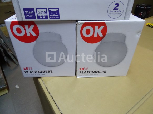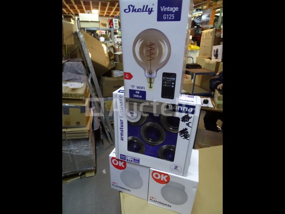 Verlichting artikelen Detail: . 2 x 28 W plafondlampen . Set van 5 inbouwspots . Vintage V125 WIFI shelly lamp Conditie: Nieuw Verzending: Tarief A