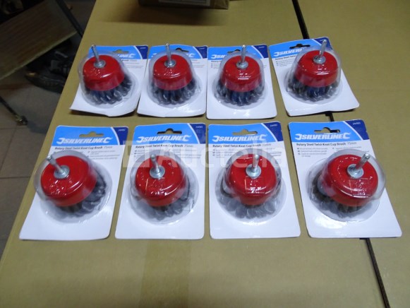 Borstel voor gedraaide staaldraadboor Merk: SILVERLINE Aantal: 8 stuks Doorsnede: 75 mm Conditie: Nieuw Verzending: Tarief A