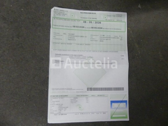 Auto Merk : Citroën Model: springerig Jaar: 2014 Kilometerstand: 118921 Vermogen: 94 kW Datum 1e inschrijving: 08-05-14 Brandstof: Diesel Verplaatsing (cc) : 1997 Versnellingsbak: Handgeschakeld Airconditioning: Handmatig Radio: Ja Achteruitrijradar: Ja Aantal toetsen: 2 Aantal zitplaatsen: 9 Certificaat van overeenstemming: Ja Certificaat technische keuring: Ja Technisch keuringscertificaat geldig tot: : 08-05-26 Bewijs van inschrijving deel 1: Ja Bewijs van inschrijving deel 2: Ja Voertuig nog in dienst (kilometerstand evolueert): Nee Chassisnummer: VF7XDAHZ4EZ012959 Euronorm: 5b Status: Functioneel op Inventarisatiedag Opmerkingen: Het voertuig heeft tijdens de inventarisatie geen grondige inspectie ondergaan en kan niet-zichtbare gebreken vertonen. De koper wordt verondersteld het kavel vóór de aankoop te hebben bezocht om de eventuele afhaling van zijn kavel te plannen.