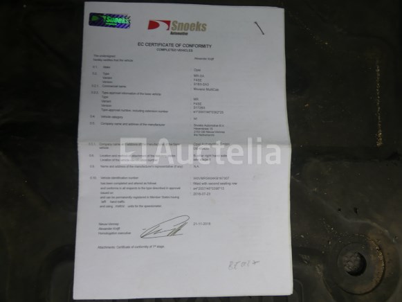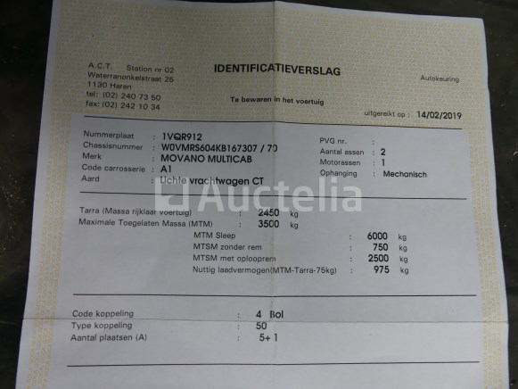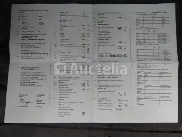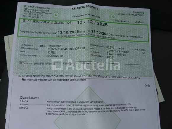 Bestelwagen Merk: Opel Model: Movano multicab Jaar: 2019 Kilometerstand : 87886 Vermogen: 107 kW Datum van 1e inschrijving: 30-01-19 Brandstof: Diesel Verplaatsing (cc) : 2399 Versnellingsbak: Handgeschakeld Airconditioning: Handmatig Radio: Ja Achteruitrijradar: Ja Aantal toetsen: 2 Aantal zitplaatsen: 6 Certificaat van overeenstemming: Ja Certificaat technische keuring: Ja Technisch keuringscertificaat geldig tot: : 13-12-25 Bewijs van inschrijving deel 1: Ja Bewijs van inschrijving deel 2: Ja Voertuig nog in dienst (kilometerstand evolueert): Nee Chassisnummer: WOVMRS604KB167307 Euronorm: 6b Status: Functioneel op Inventarisatiedag Opmerkingen: Het voertuig heeft tijdens de inventarisatie geen grondige inspectie ondergaan en kan niet-zichtbare gebreken vertonen. De koper wordt verondersteld het kavel vóór de aankoop te hebben bezocht om de eventuele afhaling van zijn kavel te plannen.