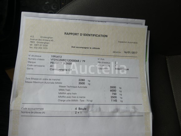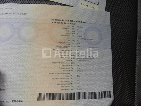 Bestelwagen Merk : Peugeot Model: Boxer Jaar: 2016 Kilometerstand: 159575 Vermogen: 96 kW Datum van 1e inschrijving: 13-12-16 Brandstof: Diesel Verplaatsing (cc) : 1997 Versnellingsbak: Handgeschakeld Airconditioning: Handmatig Radio: Ja Achteruitrijradar: Ja Aantal toetsen: 1 Aantal zitplaatsen: 3 Certificaat van overeenstemming: Ja Certificaat technische keuring: Ja Technisch keuringscertificaat geldig tot: : 16-01-26 Bewijs van inschrijving deel 1: Ja Bewijs van inschrijving deel 2: Ja Voertuig nog in dienst (kilometerstand evolueert): Nee Chassisnummer: VF3YC2MFC12D00068 Euronorm: 6b Status: Functioneel op Inventarisatiedag Opmerkingen: Het voertuig heeft tijdens de inventarisatie geen grondige inspectie ondergaan en kan niet-zichtbare gebreken vertonen. De koper wordt verondersteld het kavel vóór de aankoop te hebben bezocht om de eventuele afhaling van zijn kavel te plannen.