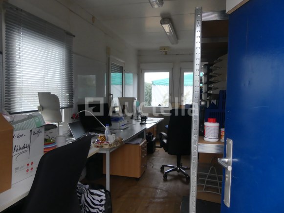 Omgebouwde kantoorcontainer Merk: Containex Model: CTX 20B Jaar: 1999 Lengte: 620 cm Breedte: 245 cm Hoogte: 280 cm Gewicht: 1965 kg Niet inbegrepen: Computers, monitoren, computerapparatuur en gasverwarming 1 deur en 4 ramen met luiken Uitgerust met verlichting en binnenstopcontacten Geleverd met kantoormeubilair waren onder andere: 1 recht bureau +- 2 ladeunits +- 2 rolstoelen op wielen 1 bijzettafel 1 Tekentabel 1 houten kast met 2 deuren +- 2 lichtmetalen planken Opmerkingen: Aanbevolen bezoek