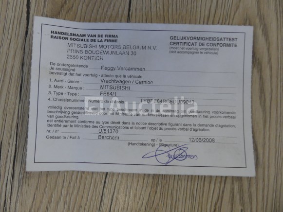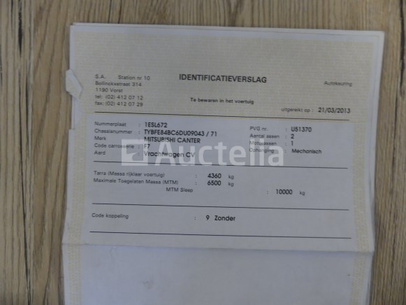 Vuilniswagen Merk: Mitsubishi Model: Galop Jaar: 2008 Lengte: 545 cm Breedte: 190 cm Hoogte: 190 cm Vermogen: 107 kW Datum van eerste inschrijving: 13-06-08 Brandstof: Diesel Verplaatsing (cc³): 2977 Versnellingsbak: Handgeschakeld MMA: 6500 kg Eigengewicht: 4360 kg Wielbasis: 275 cm Ophanging: Mechanisch Radio: Ja Aantal toetsen: 1 Aantal zetels: 3 Certificaat van conformiteit: Ja Technisch keuringscertificaat: Ja Technisch keuringscertificaat geldig tot: 21-03-26 Registratiecertificaat Deel 1: Ja Registratiebewijs Deel 2: Ja Vrachtwagengegevens: Ja Identificatierapport: Ja Voertuig nog in gebruik (kilometerstand verandert): Nee Chassisnummer: TYBFE84BC6DU09043 Eurostandaard: 4 Intern verkopersnummer (Ref): 6135 Conditie: Niet getest Koppakking moet worden vervangen Opmerkingen: Het voertuig is tijdens de inventarisatie niet grondig geïnspecteerd en kan niet-zichtbare defecten hebben. De koper zou het perceel vóór de aankoop hebben bezocht om eventuele afwikkeling van zijn perceel te plannen.
