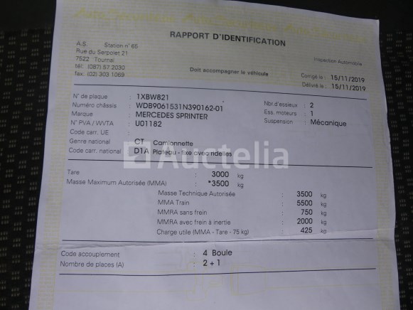 Kiepwagen Merk: Mercedes-Benz Model: Sprinter Jaar: 2008 Kilometerstand: 211583 Lengte: 655 cm Breedte: 210 cm Hoogte: 250 cm Datum van 1e inschrijving: 06-08-08 Brandstof: Diesel Verplaatsing (cc): 2148 Versnellingsbak: Handgeschakeld MMA: 3500 kg Eigengewicht: 3000 kg Ophanging: Mechanisch Radio: Ja Aantal toetsen: 1 Aantal zetels: 3 Certificaat van conformiteit: Ja Technisch keuringscertificaat: Ja Technisch keuringscertificaat geldig tot: 21-10-25 Registratiecertificaat Deel 1: Ja Registratiebewijs Deel 2: Ja Identificatierapport: Ja Voertuig nog in gebruik (kilometerstand verandert): Nee Chassisnummer: WDB9061531N390162 Status: Functioneel op Inventarisatiedag Afmetingen van de tipper: 345 cm x 200 cm x 33 cm 1 klein gebroken raam Opmerkingen: Het voertuig is tijdens de inventarisatie niet grondig geïnspecteerd en kan niet-zichtbare defecten hebben. De koper zou het perceel vóór de aankoop hebben bezocht om eventuele afwikkeling van zijn perceel te plannen.