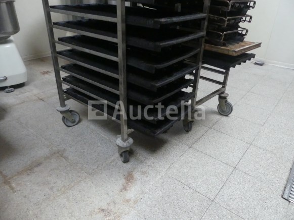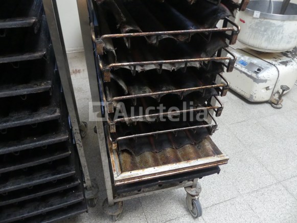 Ovenwagen met stokbroodplaat Lengte: 62 cm Breedte: 46 cm Hoogte: 170 cm Aantal: +- 2 Geleverd met +- 25 drumstickplaten