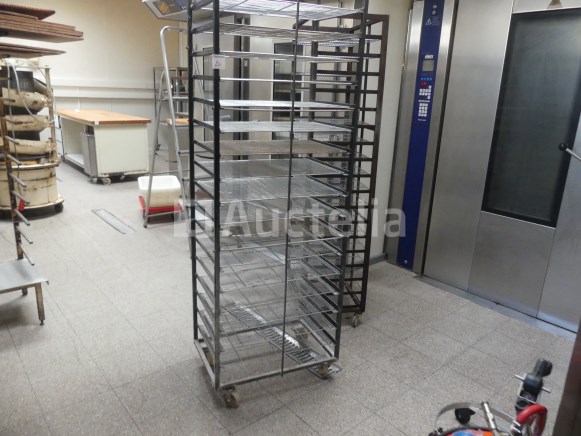 Trolley met roosters 60x40 cm Aantal: 2 Geleverd met +- 35 roosters van 60x40 cm 1 x trolley van 65x44x191 cm 1 x trolley van 65x42x184 cm
