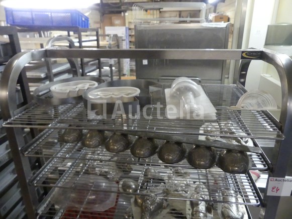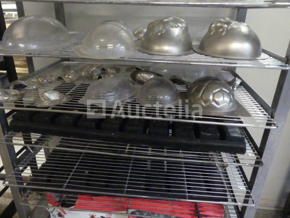 Lengte: 66 cm Breedte: 42 cm Hoogte: 180 cm Geleverd met +- 15 x 60x40 cm roosters en diverse chocolade mallen en vormen