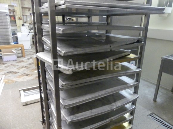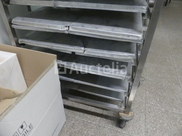 Trolley met dienbladen Aantal: 3 Geleverd met +- 55 aluminium bakjes van 60x40 cm 2 x trolley van 66x42x178 cm 1 x 65x41x186 cm trolley